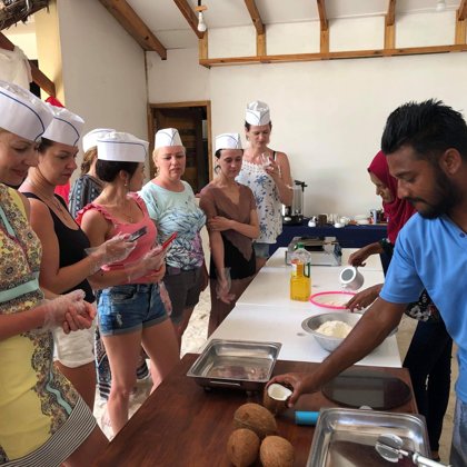 - Apguvām Maldīvu tradicionālo ēdienu gatavošanas pamatus īpašā meistarklasē vietējo pavāru pavadībā.